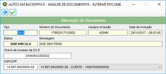 - DUE: Possibilita alterar Chave de Acesso e CNPJ