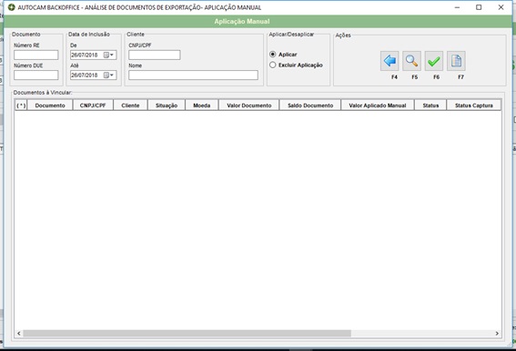 - Consultar Documentos: Possibilita consultar documentos de exportação conforme filtros aplicados que possuem Saldo a Vincular.