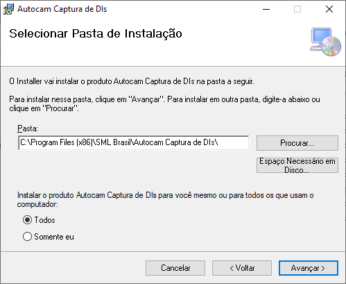 Configure o caminho de instalação de sua preferência e informe se deseja ou não instalar para todos os usuários da estação e clique em avançar.