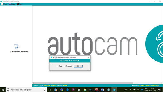 O sistema solicitará a Origem e o usuário deverá selecionar a qual área ele pertence