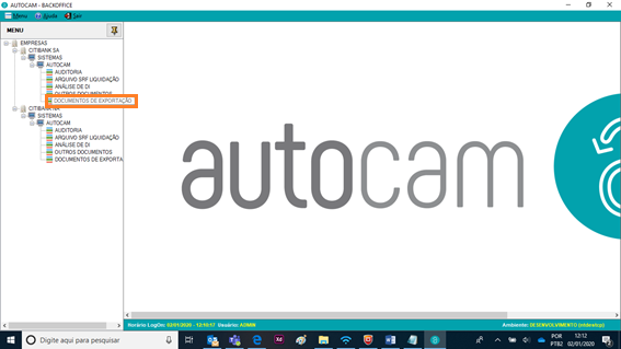 Para acessar ao módulo DU-E, o usuário deverá clicar duas vezes no menu DOCUMENTOS DE EXPORTAÇÃO