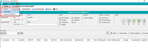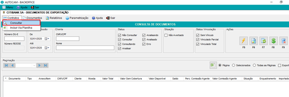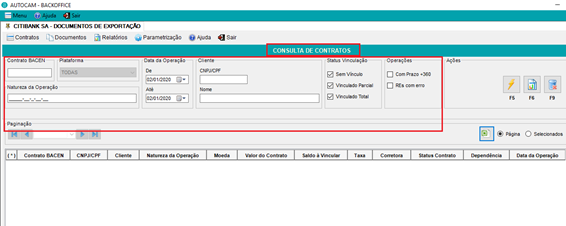 Clicar na opção de menu, contratos ? consultar, o sistema o levará para a tela de consulta de contratos