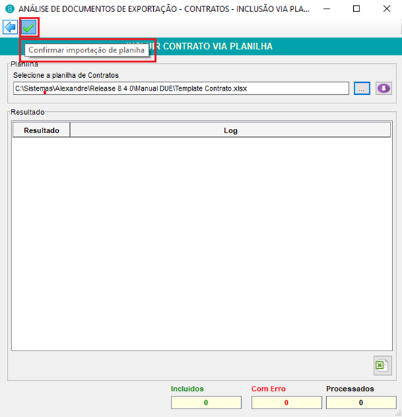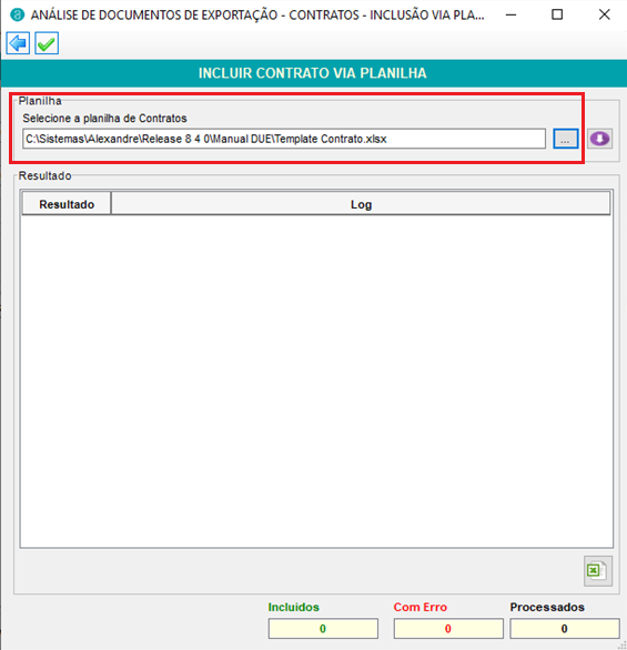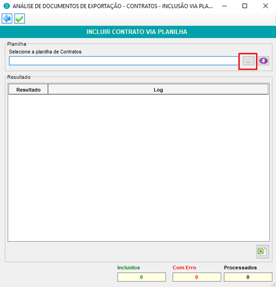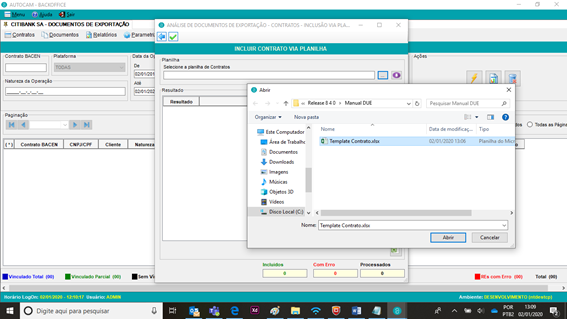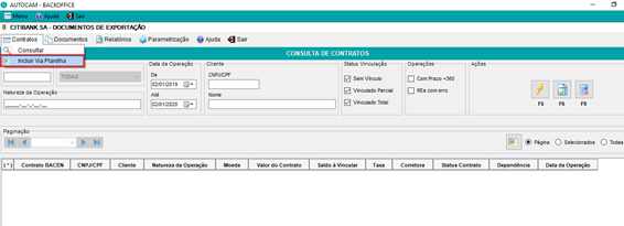 O sistema possui a funcionalidade de incluir os contratos de câmbio via planilha