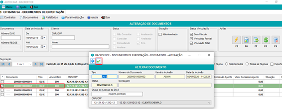 O usuário deve dar um duplo clique na linha do documento a ser alterado e efetuar as alterações, após deve clicar em confirmar