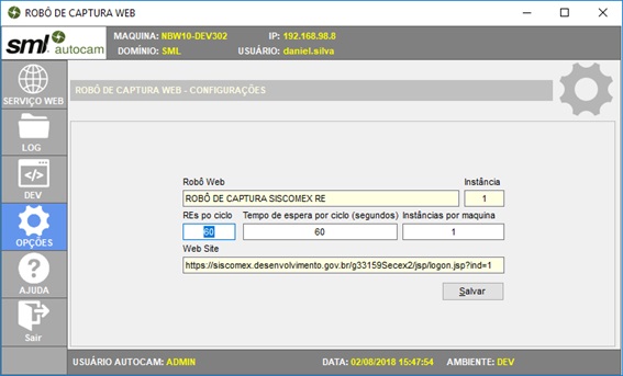 Após atualizar os dados o usuário poderá clicar no botão Salvar para armazenar e atualizar as configurações do Robô de Captura RE Web.