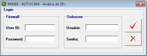 Esta opção do menu possibilita ao usuário realizar o procedimento de configuração de Firewall com inclusão de Usuário e Senha (User ID e Password), e também possibilita configuração de Usuário e Senha de Acesso ao Sisbacen.