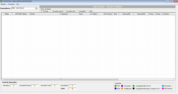 A tela de incluir edição possibilita filtrar os boletos com base em seu Status e Dependência como é possível observar na imagem abaixo.
