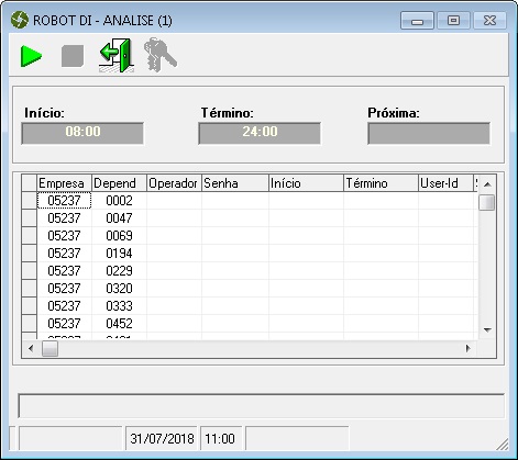Abaixo segue Tela do Robô de Análise de DI