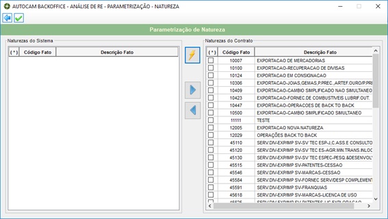 O Menu Parametrização possui apenas a opção Natureza que possibilita selecionar as Naturezas válidas para análise de relatórios. Conforme as naturezas são adicionadas a coluna Naturezas do Contrato, os contratos com as respectivas naturezas passam a ser válidos para extração dos relatórios.