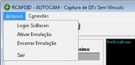 Esta opção do menu possui as mesmas características do botão Login Sisbacen. Para maiores informações verifique o comportamento descrito no Botão Login Sisbacen.