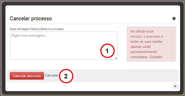 Cancelar processo significa cancelar totalmente essa instância de processo.