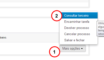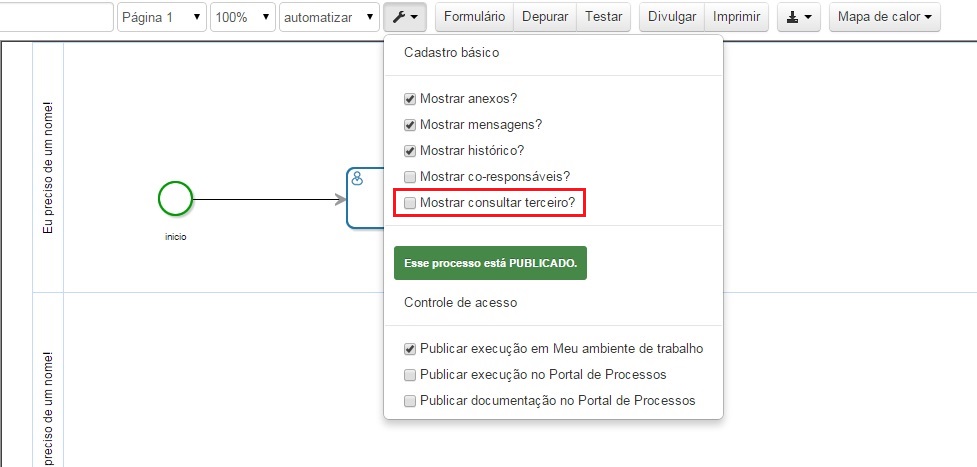 Na modelagem do processo, a opção "Mostrar consultar terceiro?" deve estar habilitada.