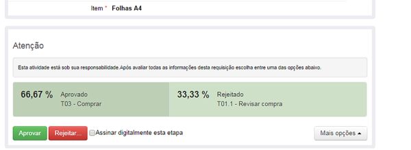 Ao clicar em um dos botões de ações e finalizar a tarefa, ela é automaticamente retirada da sua lista de tarefas pendentes. Ao mesmo tempo, o sistema se encarrega de consultar as regras do processo definidas pelo usuário criador do processo e possivelmente encaminhar uma nova tarefa para um novo usuário. Assim, no mesmo instante que você clicou em um dos botões de finalização, um colega pode estar recebendo um e-mail avisando-o de que possui uma nova tarefa pendente.