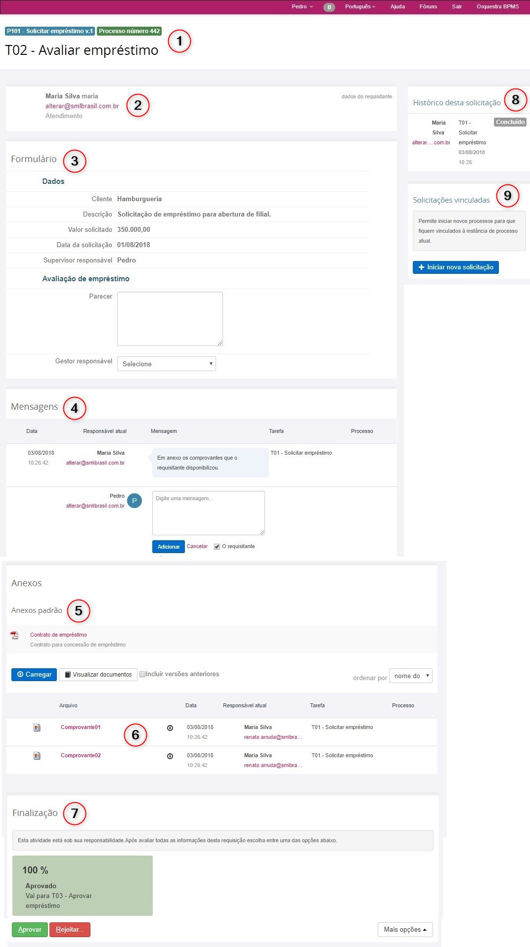 - Informações do Processo: estão disponibilizadas informações sobre o processo e a tarefa que está sendo visualizada no momento. Mais especificamente, temos: