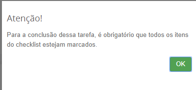 Todos os itens do checklist devem ser marcados para que a tarefa possa ser concluída, Caso contrário um aviso é mostrado na tela.
