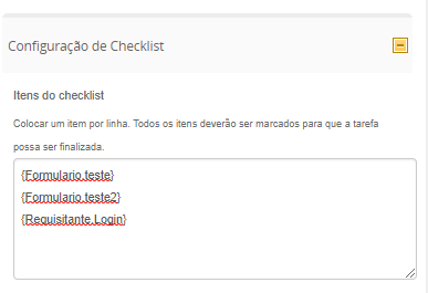 Essa nova configuração está acessível na parte "Configuração de checklist", disponível nas tarefas de início e nas tarefas humanas (aprovação/instrução).