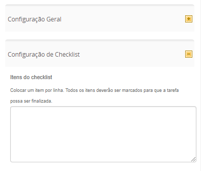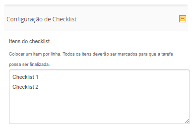 A funcionalidade de checklist permite criar itens separados que devem ser marcados ao concluir uma tarefa, de forma que ela não prossiga caso todos os itens não estejam marcados. Isso permite que as tarefas possuam instruções que devem ser seguidas para seu encerramento.