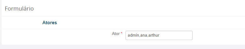Para isso acontecer, o campo do formulário deve conter o login ou código do usuário, podendo ser um campo de texto, oculto, ou numérico. Também existe o suporte a múltiplos atores definidos via tabelas multivaloradas, ou mesmo separando os valores por vírgula, seguindo as mesmas regras.