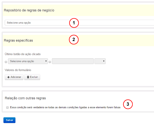 - Repositório de regras: nesse caso, essa condição será avaliada com base em uma regra específica de um grupo de regras de negócio específico.