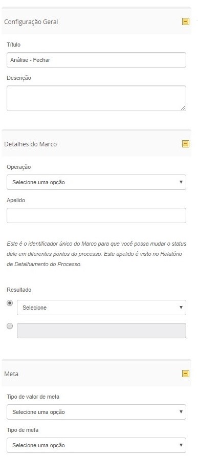 - Resultado: define que resultado o marco atual terá quando for executado;