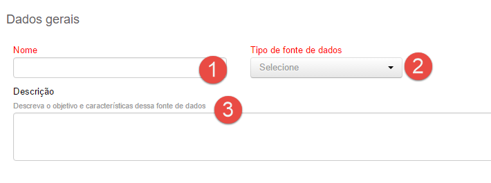 - Descrição: é um campo de texto livre que visa documentar, somente, o funcionamento e intuito da fonte de dados. Seu uso é opcional e as informação aqui salvas são usadas internamente no sistema, somente.