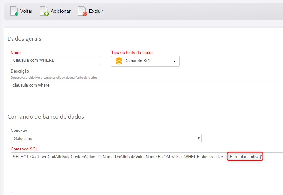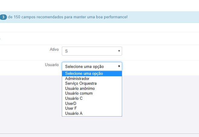 Após selecionado uma das opções da fonte de dados "Ativo", as opções da fonte de dados "Usuário" são carregadas.