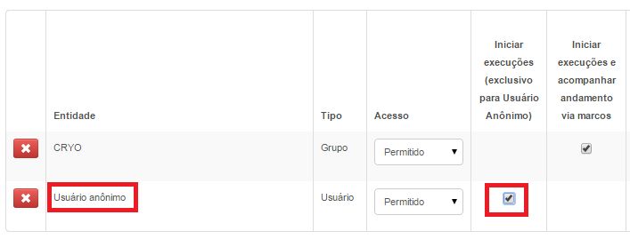 Atenção!| A partir da versão 3.3 para um processo ser acessível de forma anônima é necessário efetuar tal configuração na tela de Gerenciar Acessos do processo. |