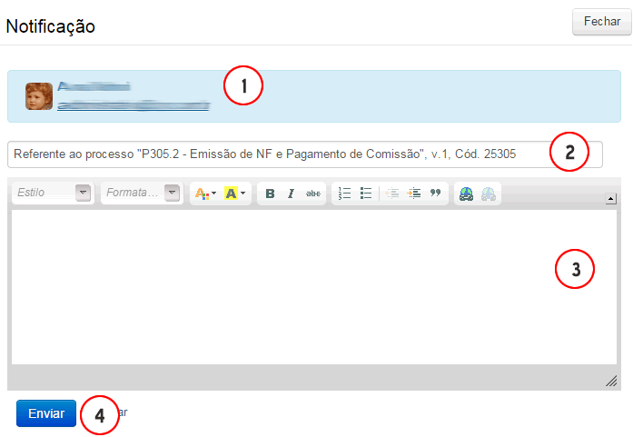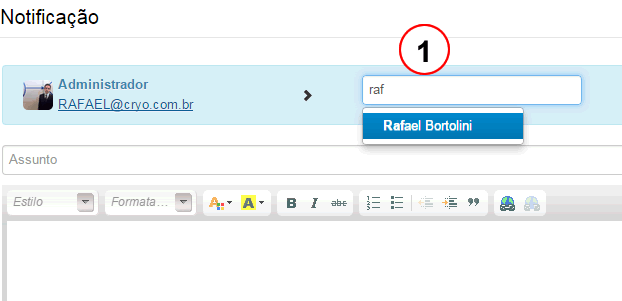 Ao clicar no endereço de e-mail, a tela de envio da notificação é aberta: