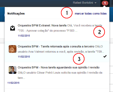 - Ao clicar no botão "Marcar todas como lidas", todas as notificações que o sistema identifica que você não leu são marcados como lidas
