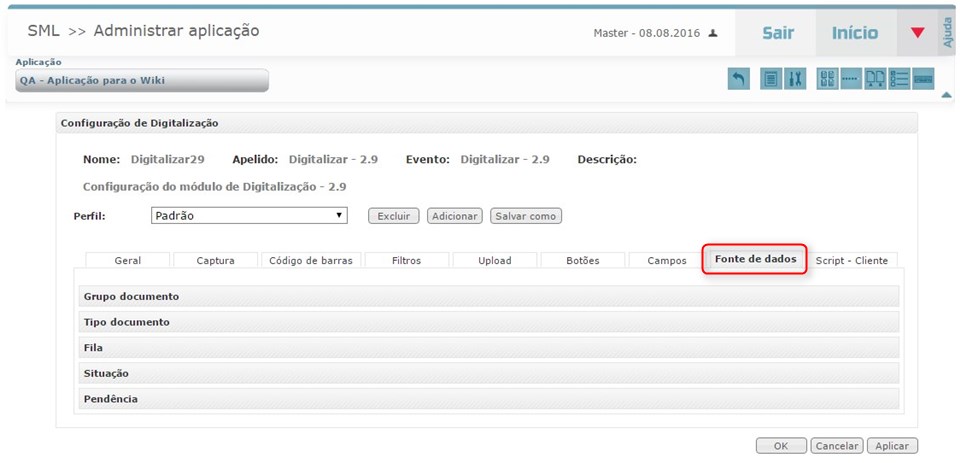 Nesta atividade é possível configurar o módulo de digitalização, incluindo o tipo de digitalização realizada, configurações de captura e filtros aplicados na imagem, campos exibidos para preenchimento, entre outros. Para saber como criar e configurar o evento de digitalização de documentos, siga os procedimentos a seguir:
