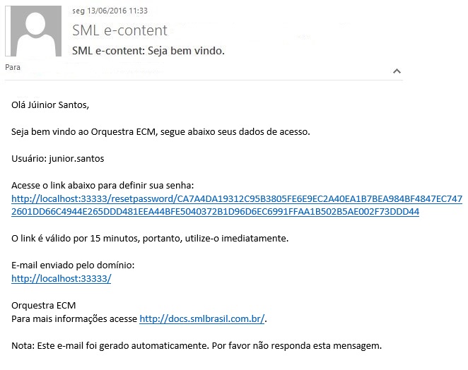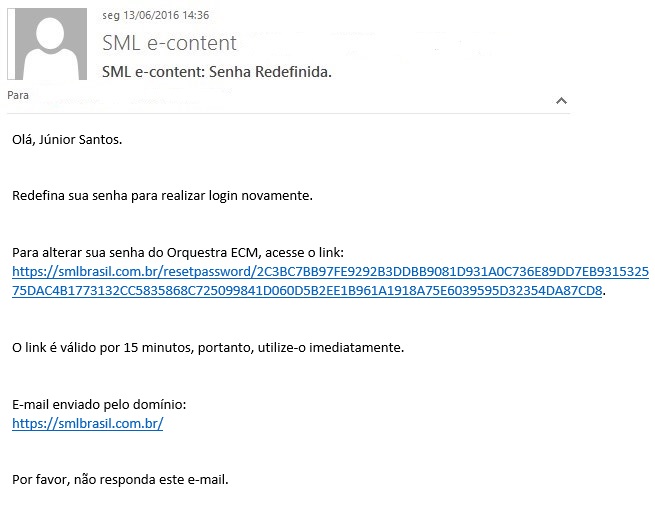 O administrador do sistema também pode enviar um link para redefinição de senha. Quando isso acontece, o usuário é alertado por e-mail: