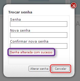 Após a senha ser alterada será exibida uma mensagem informando que a senha foi alterada com sucesso. Clique em Cancelar para fechar este modal e continuar utilizando o sistema':
