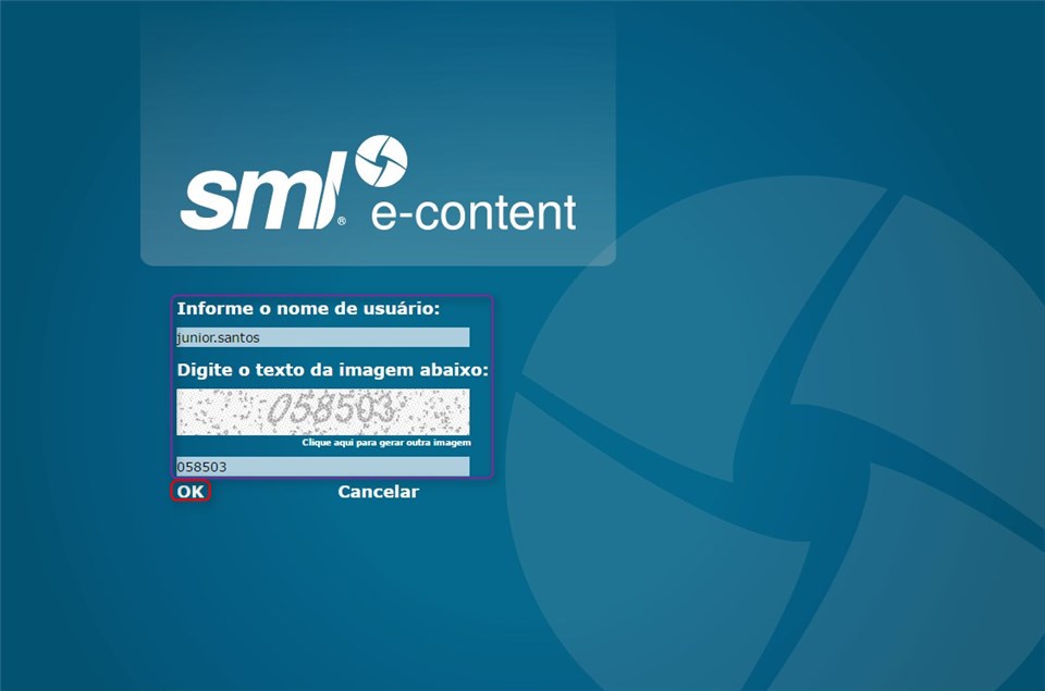 Será necessário informar o usuário que deseja ter a senha alterada e preencher o captcha, de acordo com a imagem apresentada. Após preencher todos os campos, clique no botão Ok: