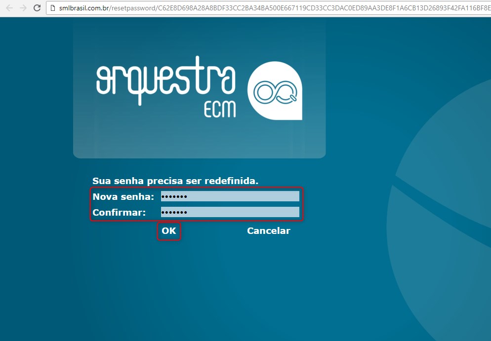 Senha será alterada e usuário efetuará o login no Orquestra ECM: