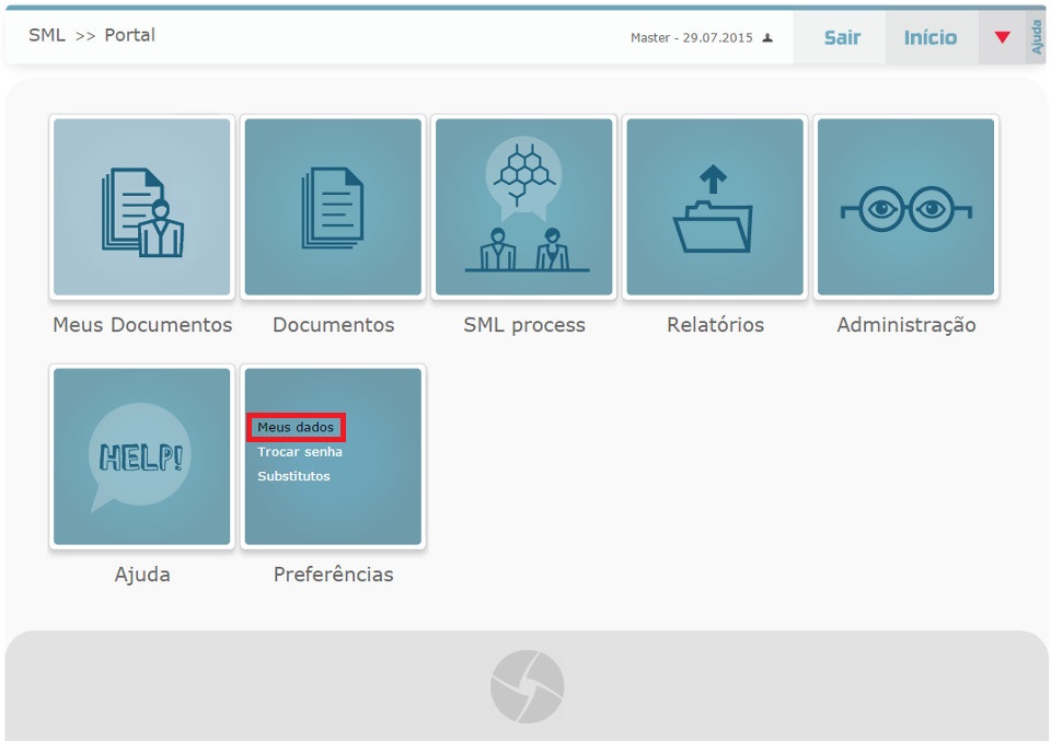 Com o tempo, alguns dados podem ficar desatualizados, necessitando de atualizações. O Orquestra ECM permite que o próprio usuário realize estas modificações, através da opção Meus dados, que encontra-se dentro do menu de Preferências.