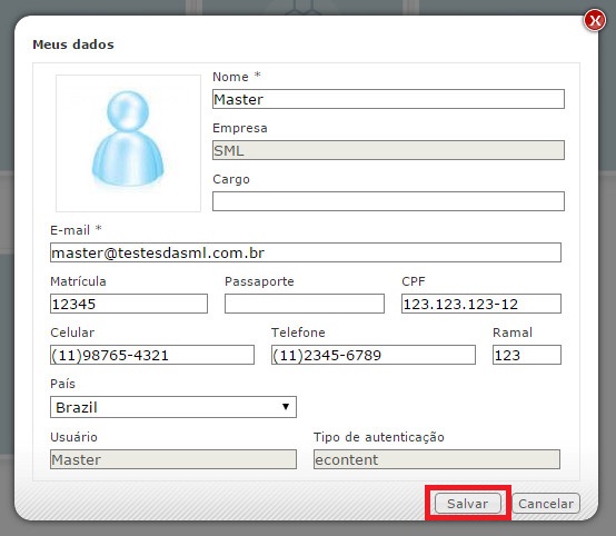 Altere os campos desejados. Inclusive, é possível alterar a foto do usuário. Após efetuar as alterações, clique em Salvar: