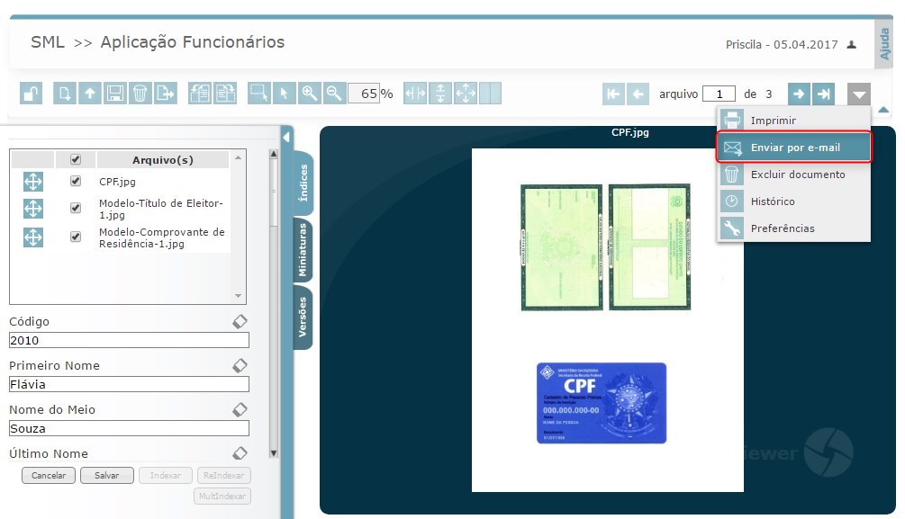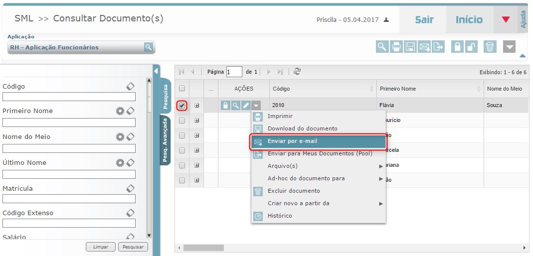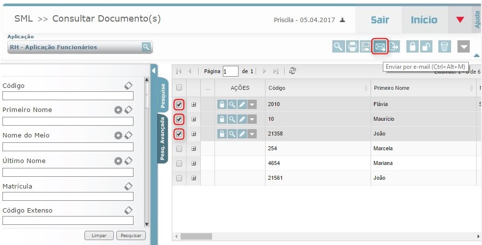 A funcionalidade de envio de e-mail está presente nos módulos de Consulta, Visualização e Edição. Confira abaixo como realizar esta operação: