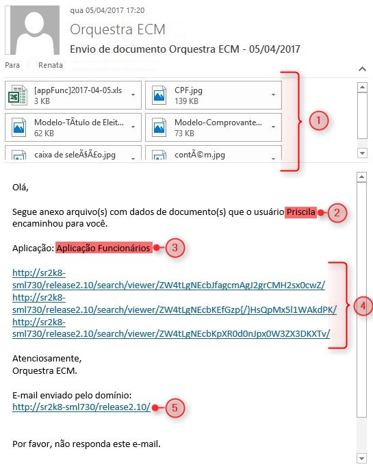 | 3 | Aplicação: informa a aplicação que contém o documento referido no e-mail; |