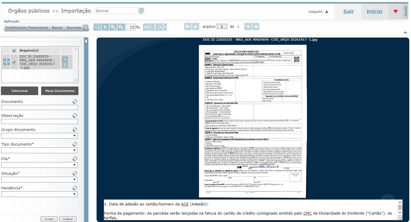 Siga os procedimentos informados anteriormente para o preenchimento de campos e indexação do documento.
