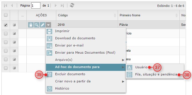 | 38 | Ad-hoc do documento para fila, situação e pendência: permite direcionar o documento selecionado para uma determinada fila e/ou situação e/ou pendência; |