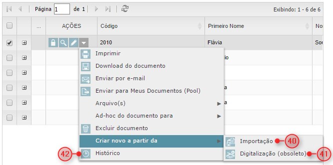 | 41 | Criar novo a partir da Digitalização (obsoleto): permite criar um novo documento, com os mesmos campos do documento selecionado já preenchidos, utilizando para isso o módulo de Digitalização (obsoleto) |