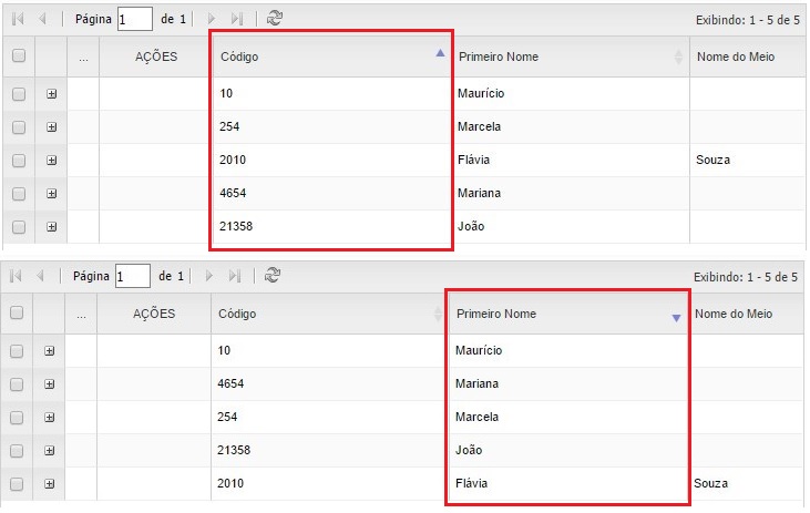 - Reordenar resultados de uma coluna: é possível ordenar os resultados de uma coluna de forma ascendente/descendente ou crescente/decrescente, clicando sobre o título da mesma;
