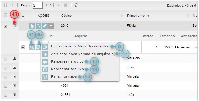 | 44 | Visualizar arquivo: permite visualizar diretamente o arquivo que foi selecionado. Para isso, é carregado o módulo de visualização; |