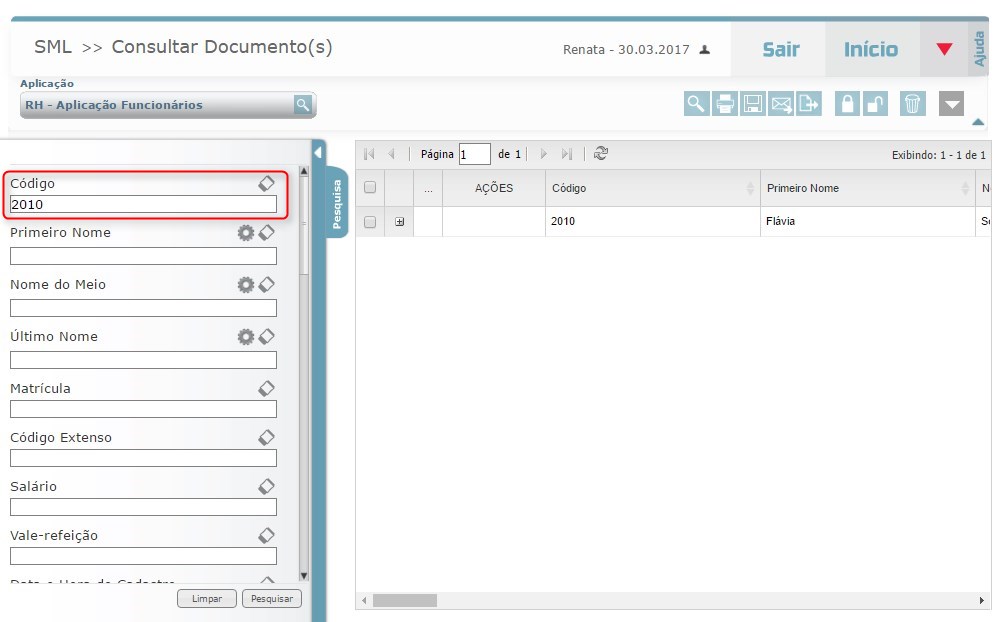 Esta opção serve para localizar documentos através de critérios de busca, usando para isso os campos da aplicação. Para saber como pesquisar documentos, siga os passos a seguir.