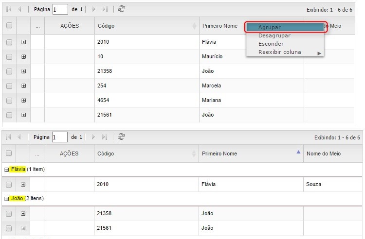 - Agrupar resultados por coluna: é possível agrupar os resultados de uma coluna. Para isso, clique com o botão direito do mouse sobre o título da coluna que deseja agrupar e escolha a opção "Agrupar";