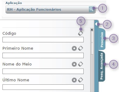 | 4 | Pesquisa avançada: contém o restante dos campos da aplicação que podem ser utilizados como filtros para a pesquisa de documentos. Geralmente não são os campos mais utilizados em uma pesquisa; |