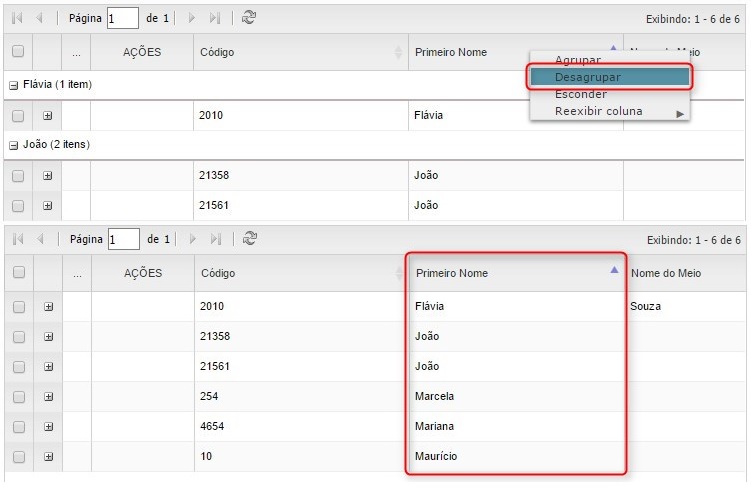 - Desagrupar resultados: também é possível desagrupar os resultados de uma busca. Para isso, clique com o botão direito do mouse sobre o título da coluna que deseja desagrupar e escolha a opção "Desagrupar";